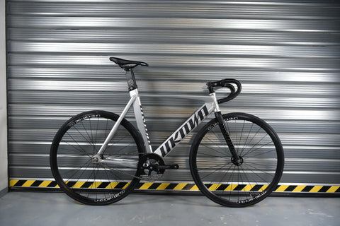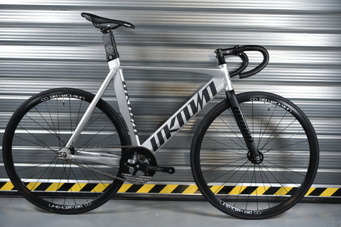 The Unknown Singularity Silver is the evolution of the legendary LV2 frame, redesigned from the ground up as a complete race-ready fixed gear bike. The clean silver finish gives this bike a timeless, head-turning look that works on the track and the streets. Built around a hardened 6066-T6 aluminum frame with updated track geometry and an integrated aero seatpost, the Singularity delivers serious performance at just 7.5kg in size M.